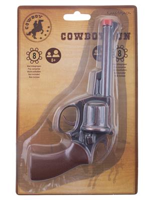 Completa a carnevale il tuo look da sceriffo o cow boy ! Perfetto per feste a tema western o per giocare a fare gli sceriffi con gli amici.Pistola 8 colpi in metallo da cm 23