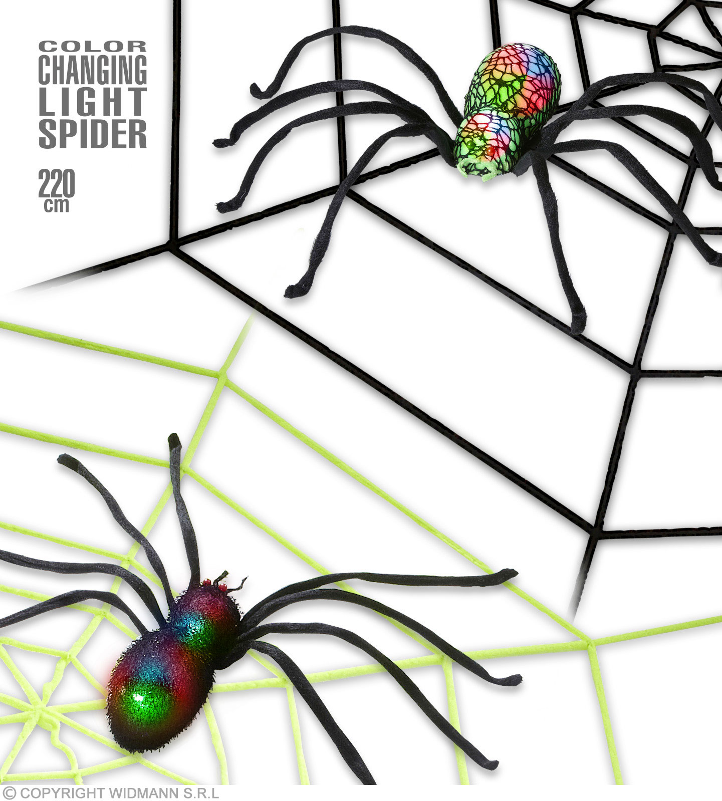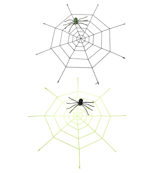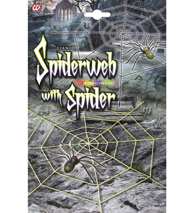 Ragnatela gigante in ciniglia con ragno luminoso che cambia colore