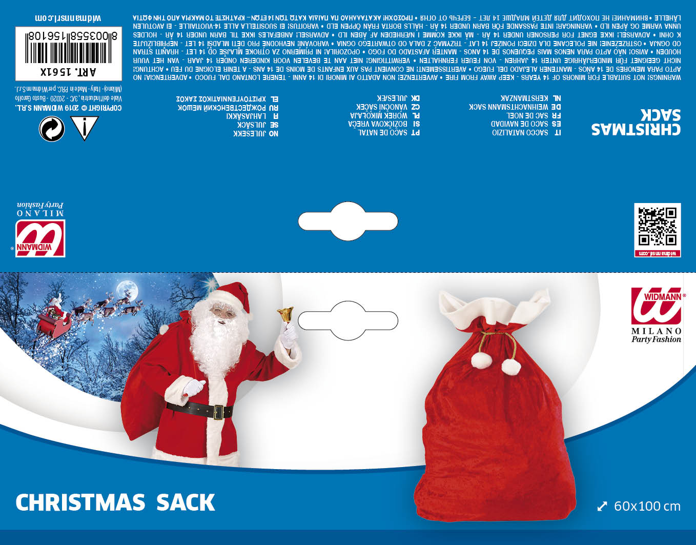 Ho ho ho! Ti vestirai da Babbo Natale? Allora questo sacco di Babbo Natale della ditta Widmann è quello che fa per te. Ogni Babbo Natale dovrebbe avere un sacco di Babbo Natale. Misura circa 60 x 100 cm ed è di colore rosso. Grazie alle sue dimensioni, ha abbastanza spazio per contenere molti regali e far brillare gli occhi dei bambini.