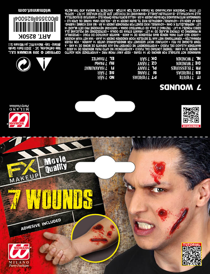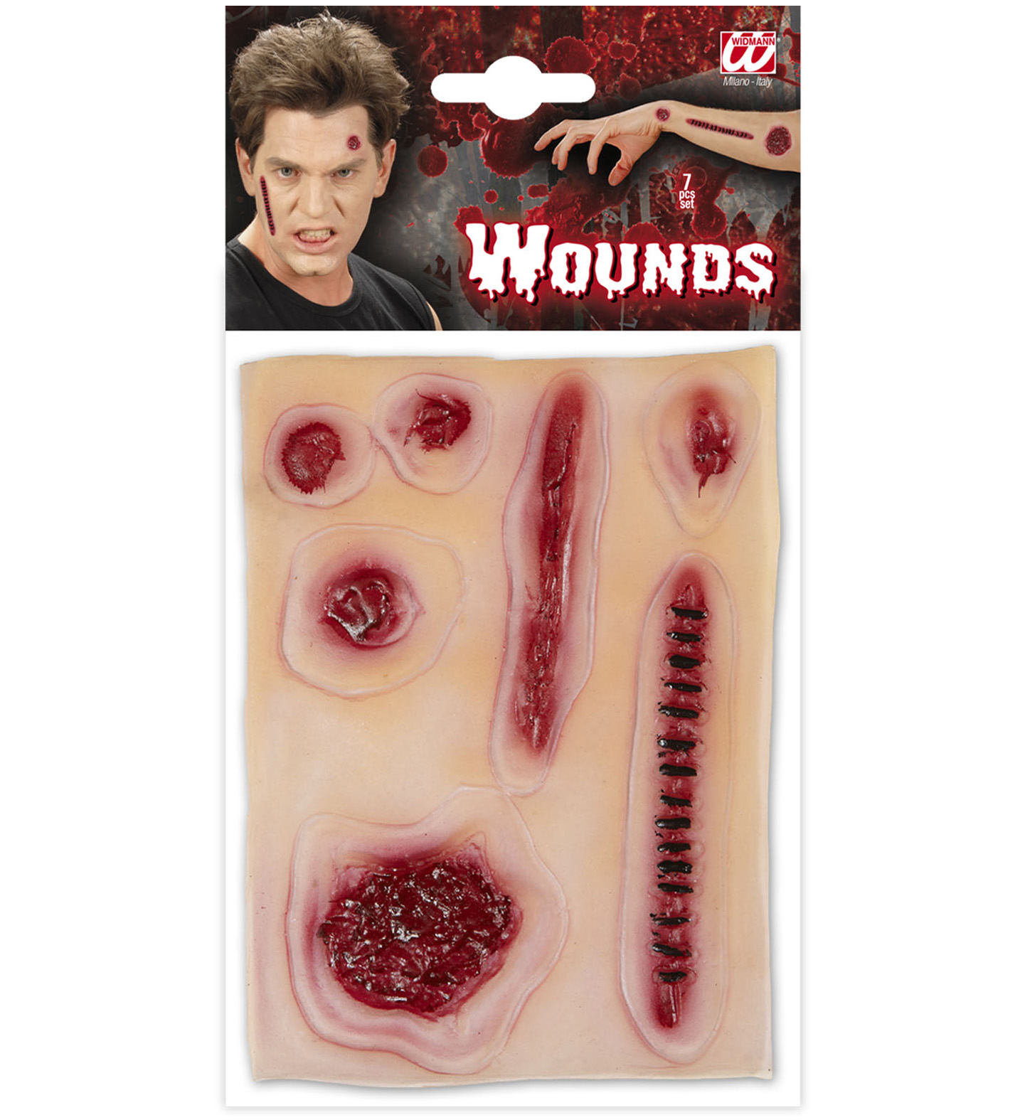 Questo kit di 3 protesi in lattice rappresenta delle ferite. La confezione comprende l adesivo speciale per poterle attaccare. Saranno perfette per completare il tuo costume di halloween!Accessorio trucco, camuffamenti, cosmetica, Travestimento Halloween, Carnevale, Make Up, cosplay