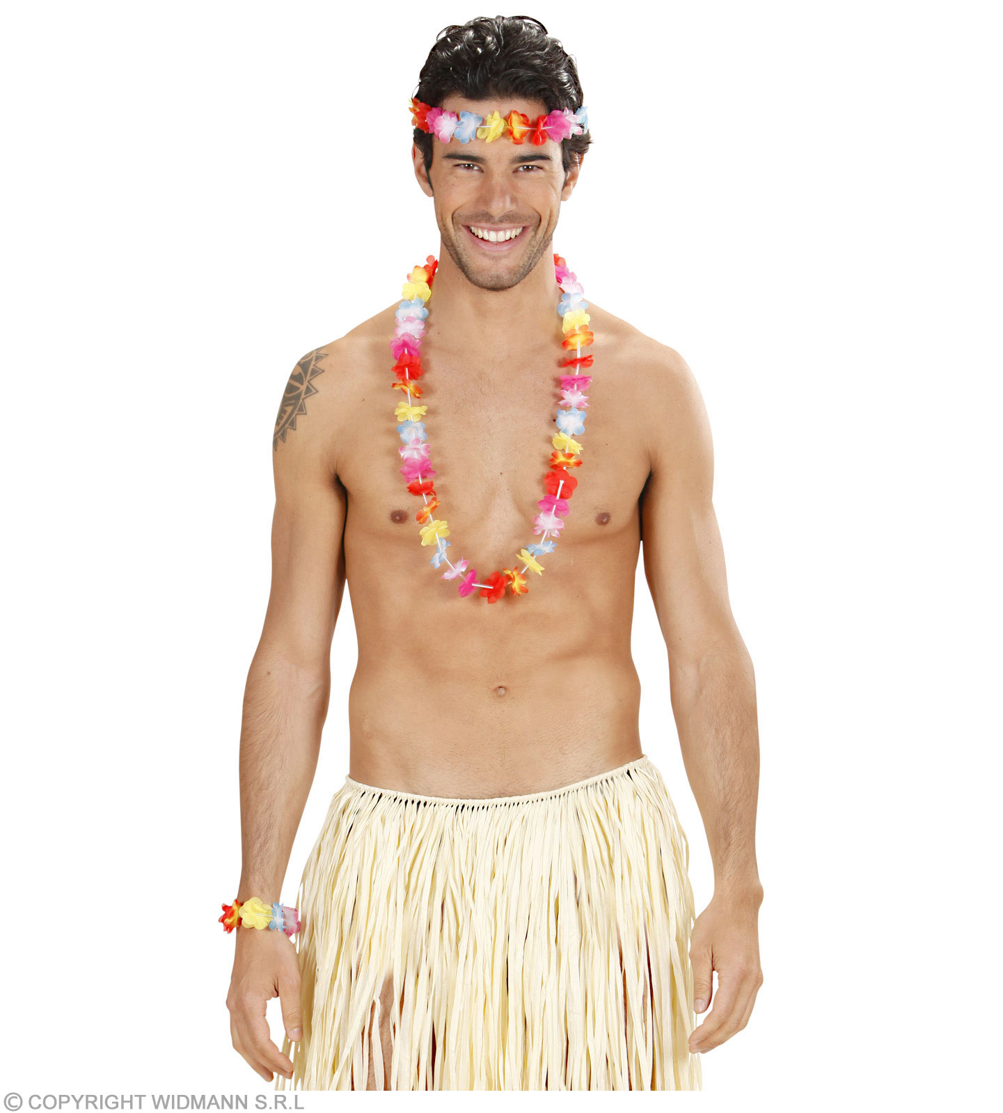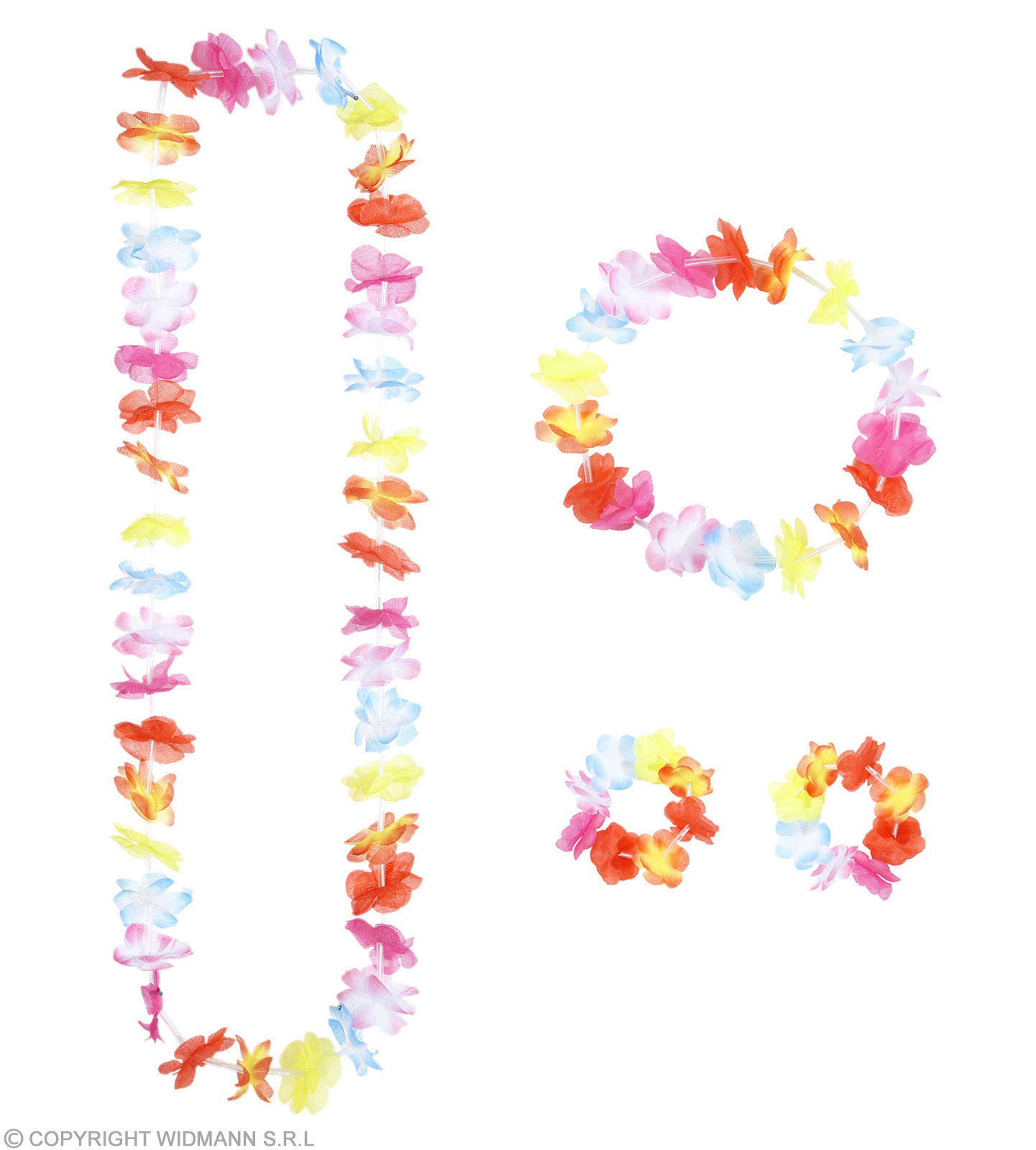 Set hawaiano multicolore Collana , Corona , Due Braccialetti