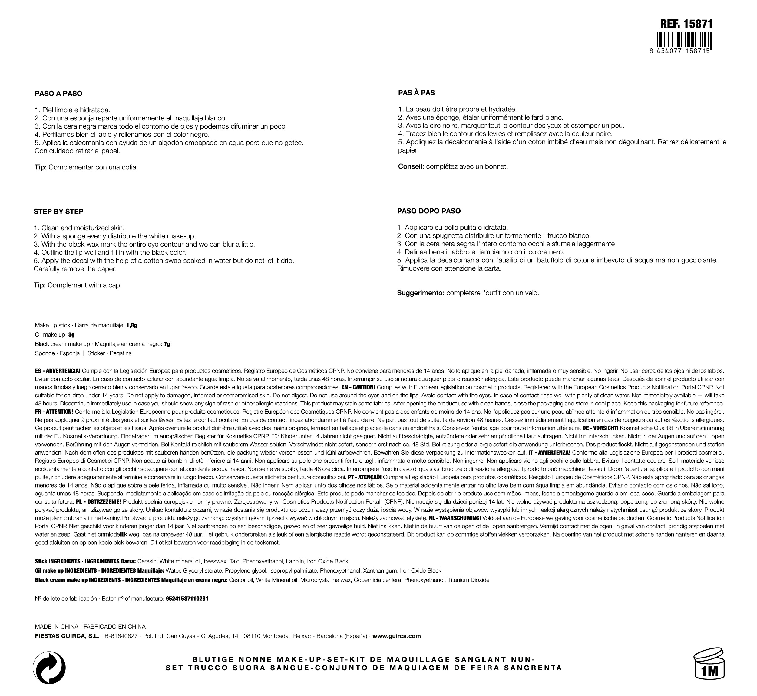 Set trucco suora insanguinata