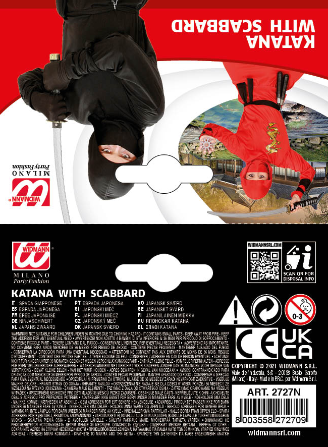Stai cercando l’accessorio giusto per travestirti da ninja? Allora questa spada giapponese dell’azienda Widmann è proprio quello che fa per te La spada è lunga circa 60 cm e si inserisce in una guaina nera La guaina è inoltre dotata di una tracolla nera per essere trasportata meglio. In questo modo l’arma giapponese può essere portata a spalla La spada giocattolo dai dettagli molto fedeli all’originale è decorata con elementi oro ed è ideale per grandi e piccini. Per attirare l’attenzione in qualsiasi festa