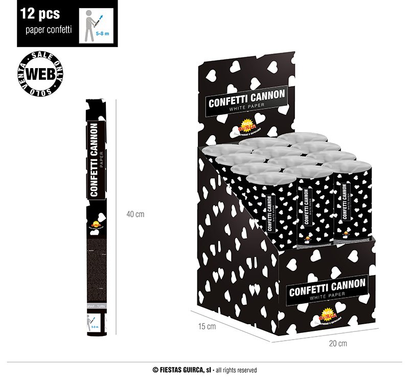 Sparacoriandoli Coriandoli Cuori Bianchi in Carta Tubo 40 cmUn accessorio perfetto per completare il tuo allestimento per la tua festa.