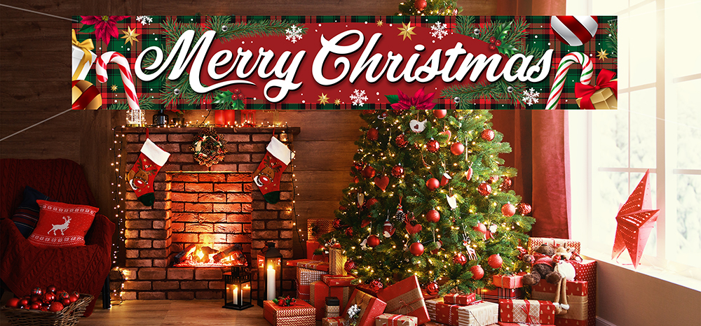 - Striscione natalizio con scritta Buon Natale, realizzato in poliestere.