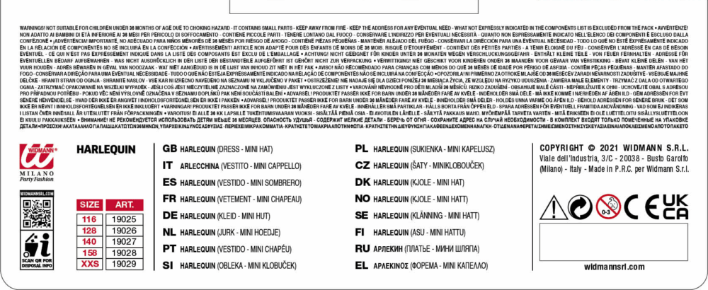 Widmann Costume ARLECCHINA .La confezione comprende:vestito, mini cappello . Sono esclusi gli altri accessoriAbito,Travestimento,Carnevale,Comico,cosplay,Halloween