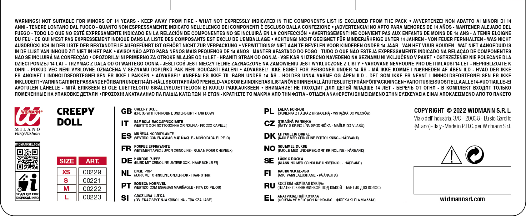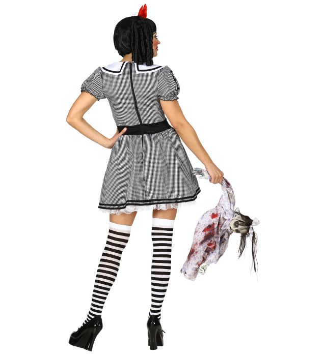 Costume Bambola Raccapricciante da Donna composto da: vestito con sottogonna crinolina, fiocco capelli; ideale per travestimanti ad halloween, carnevale, tutte le feste in maschera. Lavare a mano; Non stirare; No candeggina, asciugatrice o lavaggio a secco.Informazioni aggiuntive