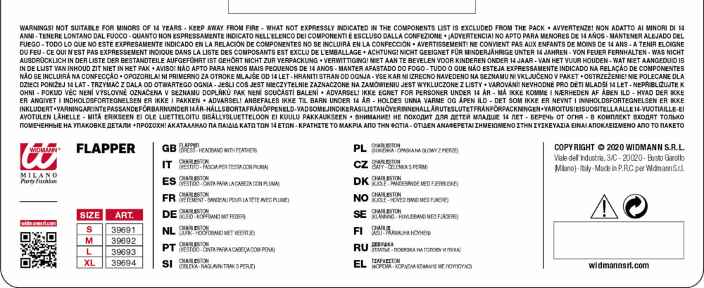 La confezione comprende:vestito, fascia per la testa con piume. Sono esclusi gli accessori non menzionati.