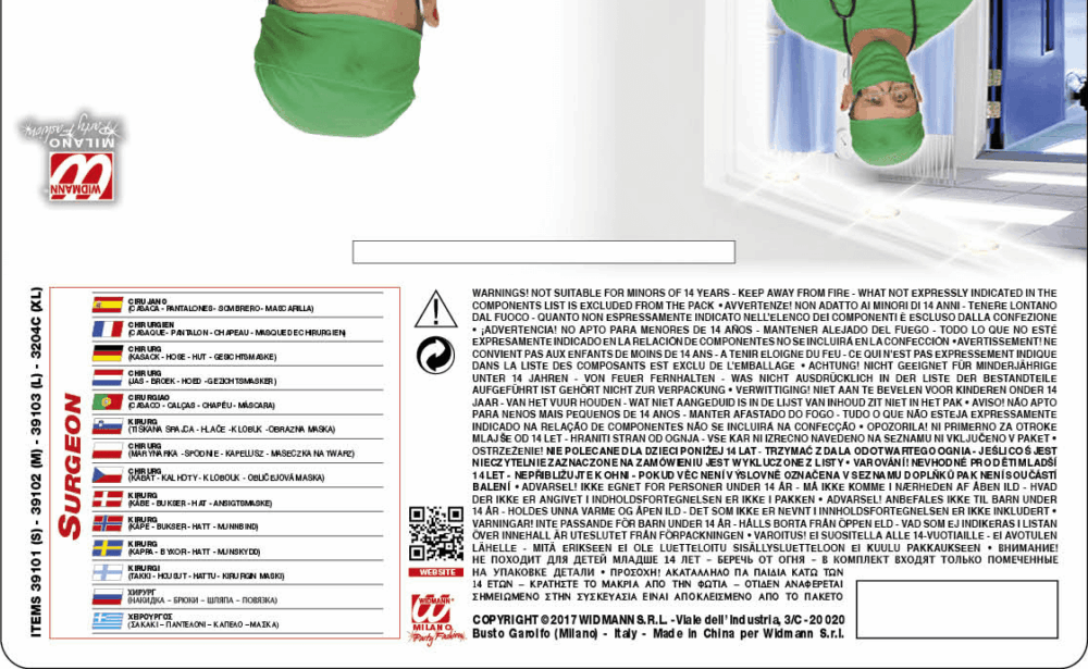 La confezione comprende: casacca pantaloni cappello mascherina. Sono esclusi gli accessori non menzionati.