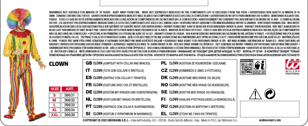 WIDMANN COSTUME CIRCUS CLOWN . La confezione comprende: costume con collare e bretelle. Sono esclusi gli accessori non menzionati.