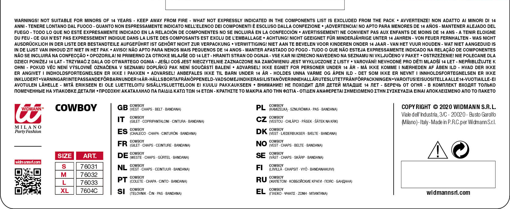 COSTUME RODEO COWBOY. La confezione comprende: gilet, chaps, cintura, bandana. Sono esclusi gli accessori non menzionati.