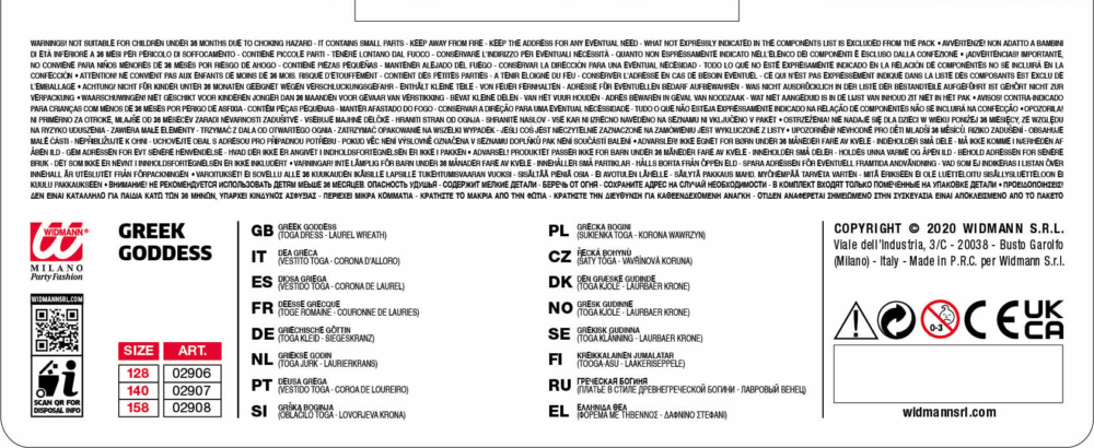 WIDMANN COSTUME DEA GRECA . La confezione comprende: vestito, corona d alloro. Sono esclusi gli accessori non menzionati.Abito,Travestimento,Carnevale,Comico,Halloween,cosplay