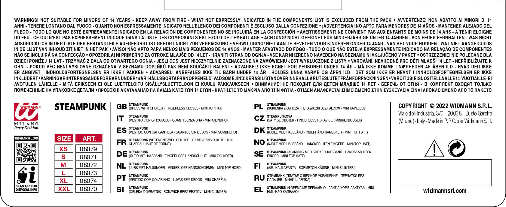 WIDMANN COSTUME Donna STEAMPUNK . La confezione comprende: vestito con girocollo, guanti.. Sono esclusi gli accessori non menzionati.Abito,Travestimento,Carnevale,Comico,Halloween,cosplay