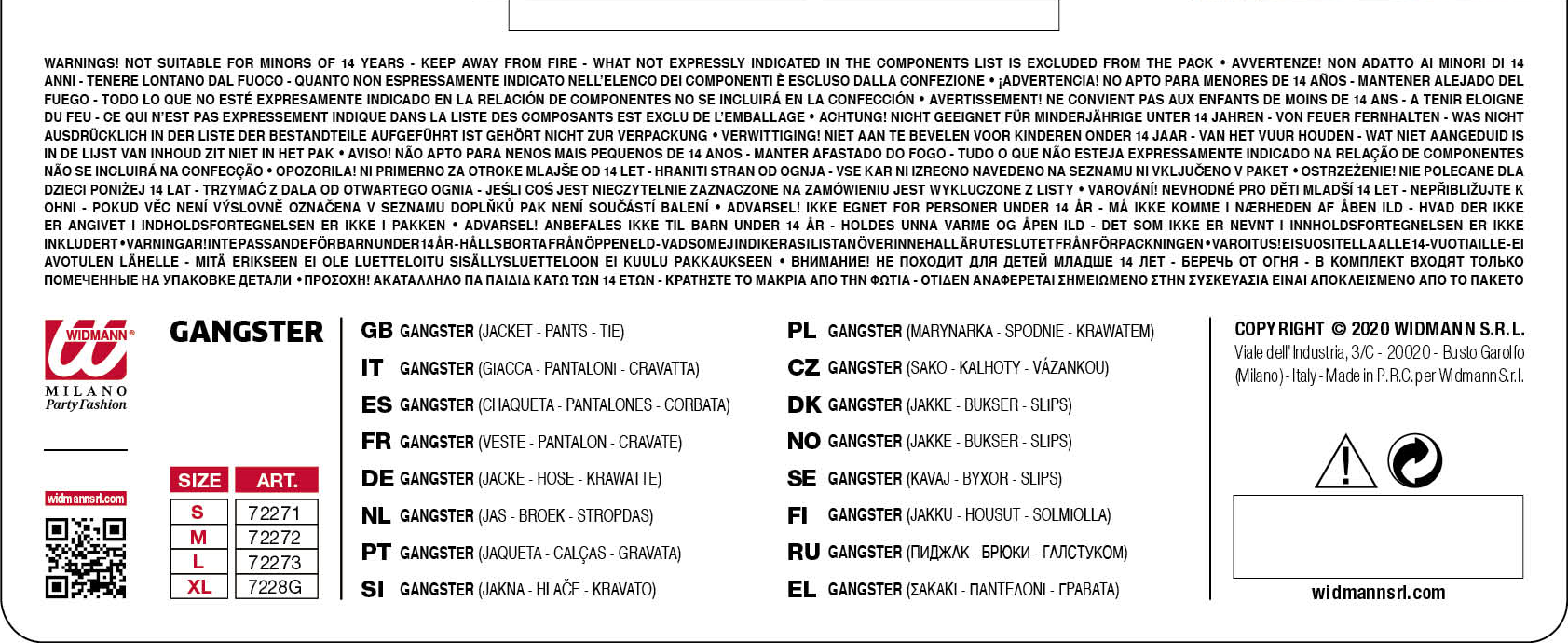 - L’articolo è composto da giacca, pantaloni e cravatta (cappello, pistola giocattolo e altri accessori venduti separatamente)