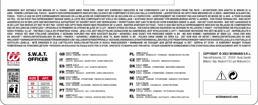 WIDMANN COSTUME S.W.A.T. GIRL . La confezione comprende:vestito, bracciale, giarrettiera, guanti. Sono esclusi gli accessori non menzionati.Abito,Travestimento,Carnevale,Comico,Halloween,cosplay