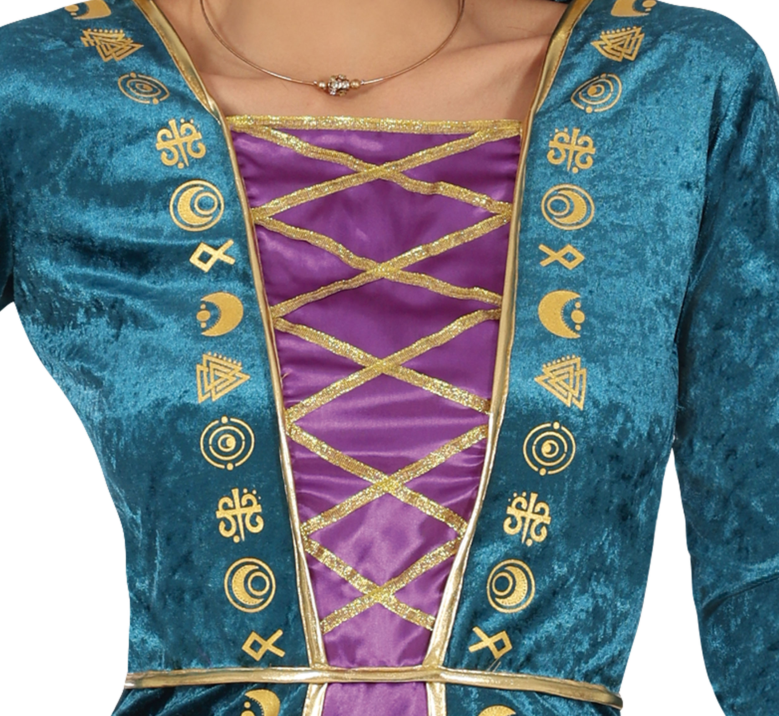 - CONTENUTO di questo costume in maschera da donna magica sorella strega: vestito. NON_INCLUSO: parrucca da strega rossa, collana