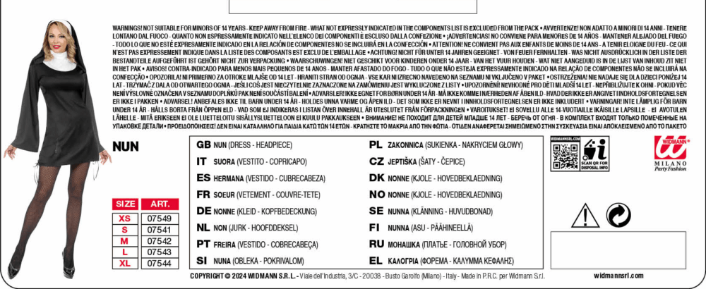 La confezione comprende: vestito, copricapo. Sono esclusi gli accessori non menzionati.