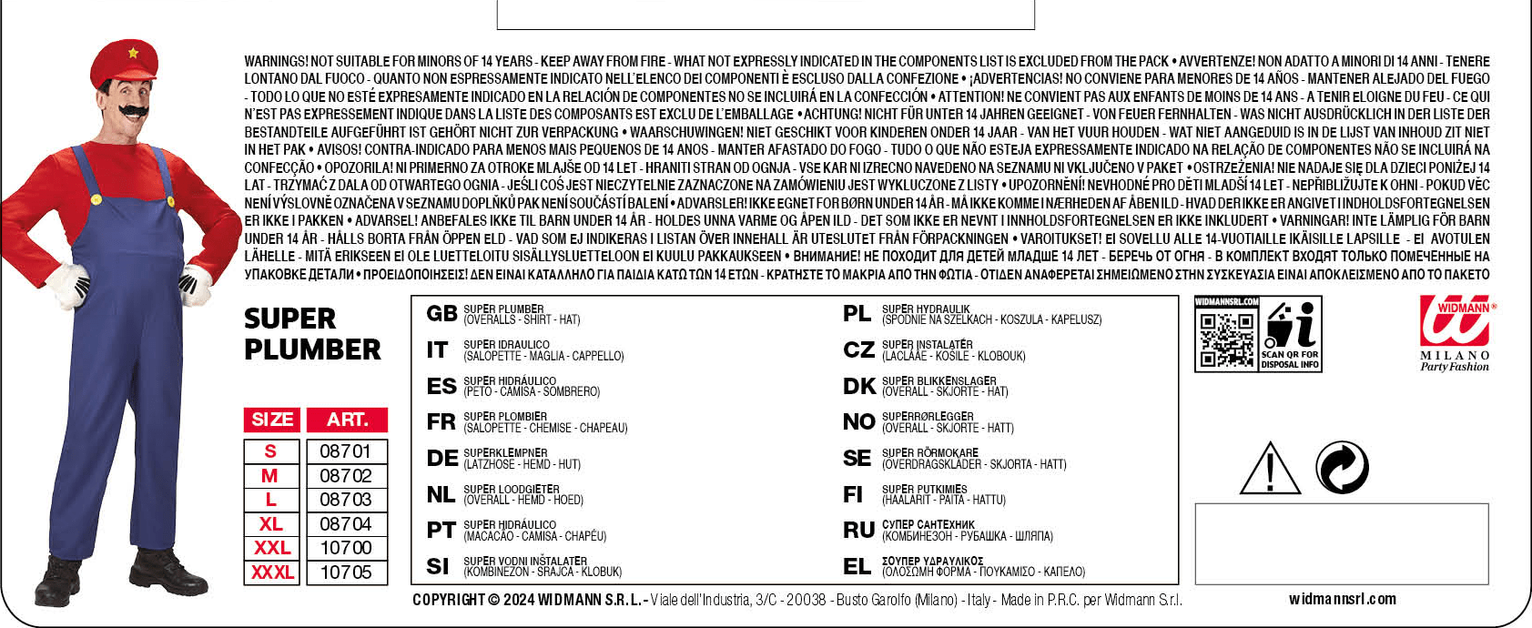 WIDMANN COSTUME SUPER IDRAULICO. La confezione comprende: salopette, maglia, cappello. Sono esclusi gli accessori non menzionati.Abito,Travestimento,Carnevale,Comico,Halloween,cosplay