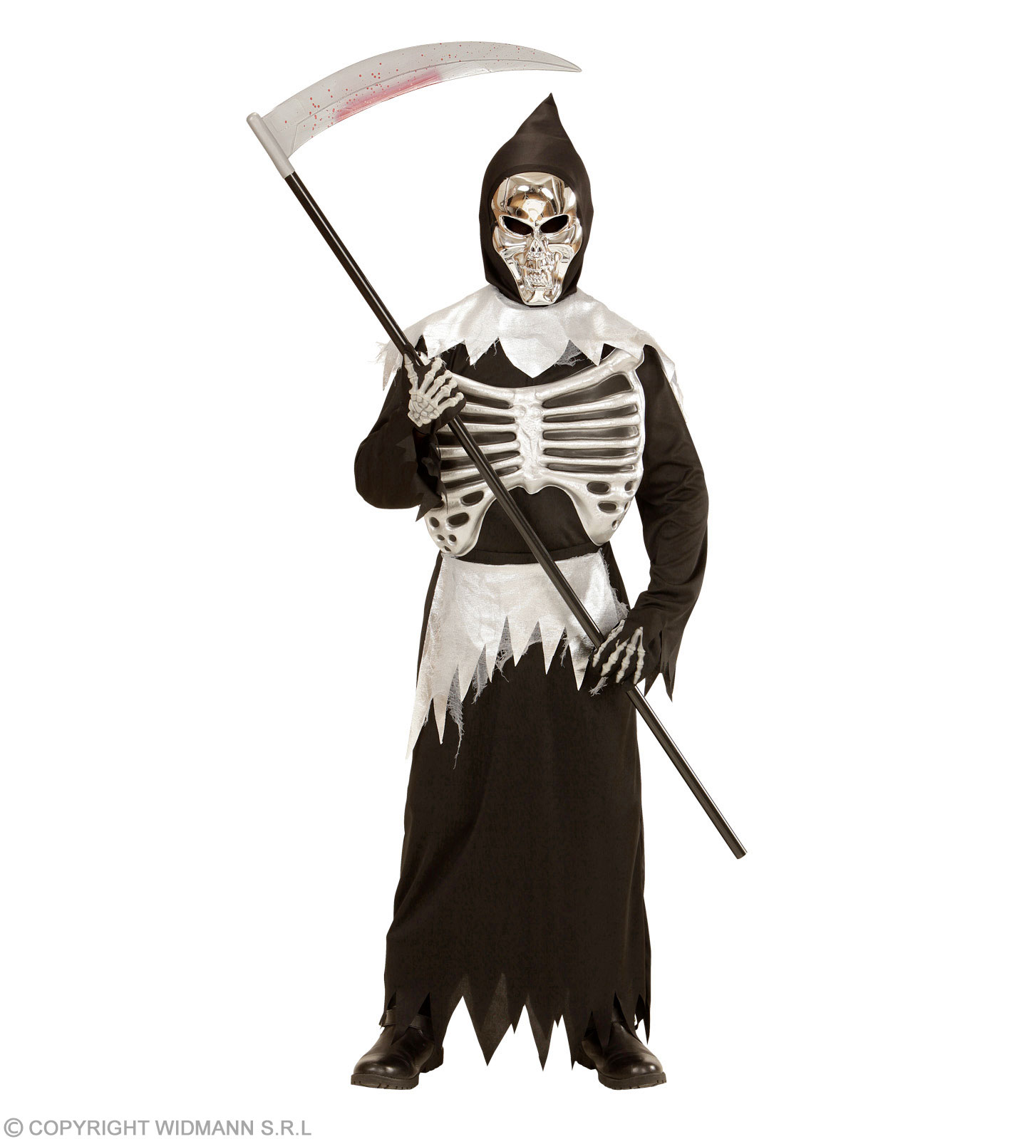 La confezione comprende: tunica con gabbia toracica, cintura, maschera con cappuccio. Sono esclusi gli accessori non menzionati.